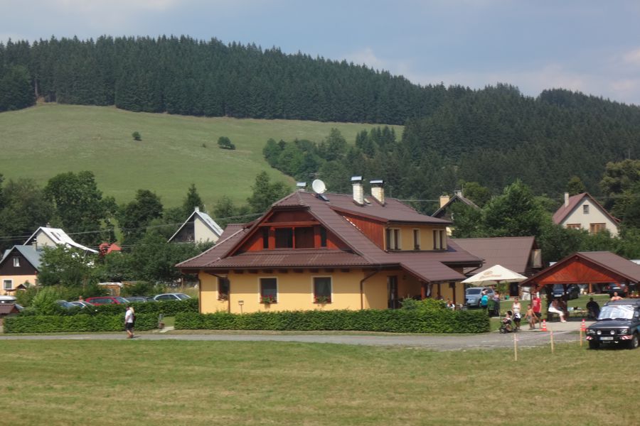 Přistávací plocha na louce za apartmánem