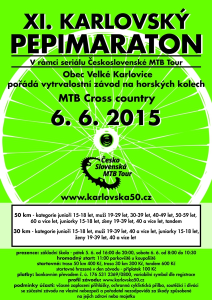 A je to tu opět, 6.6.2015 od 11:00 startuje oblíbený vytrvalostní závod na horských kolelch - KARLOVSKÝ PEPIMARATON.